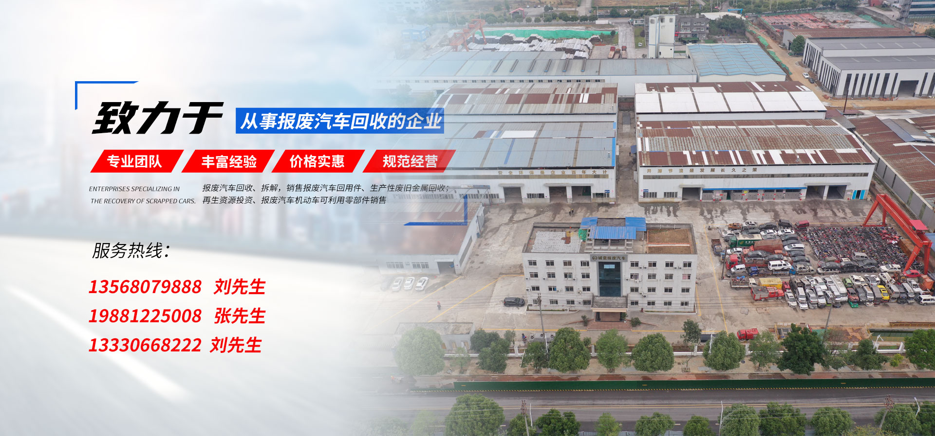 我公司在報廢汽車回收拆解中,認真貫徹執行國家法律法規,嚴格執行國務院令第307號,積極開展行業自律,依法回收,規范經營,從源頭上控制了報廢汽車整車、拼裝車、“五大總成”等上路和重新流入市場的現象,為緩解我市資源短缺,減輕環境污染,促進資源循環,維護人民群眾生命財產安全和道路交通安全起到了巨大的作用。